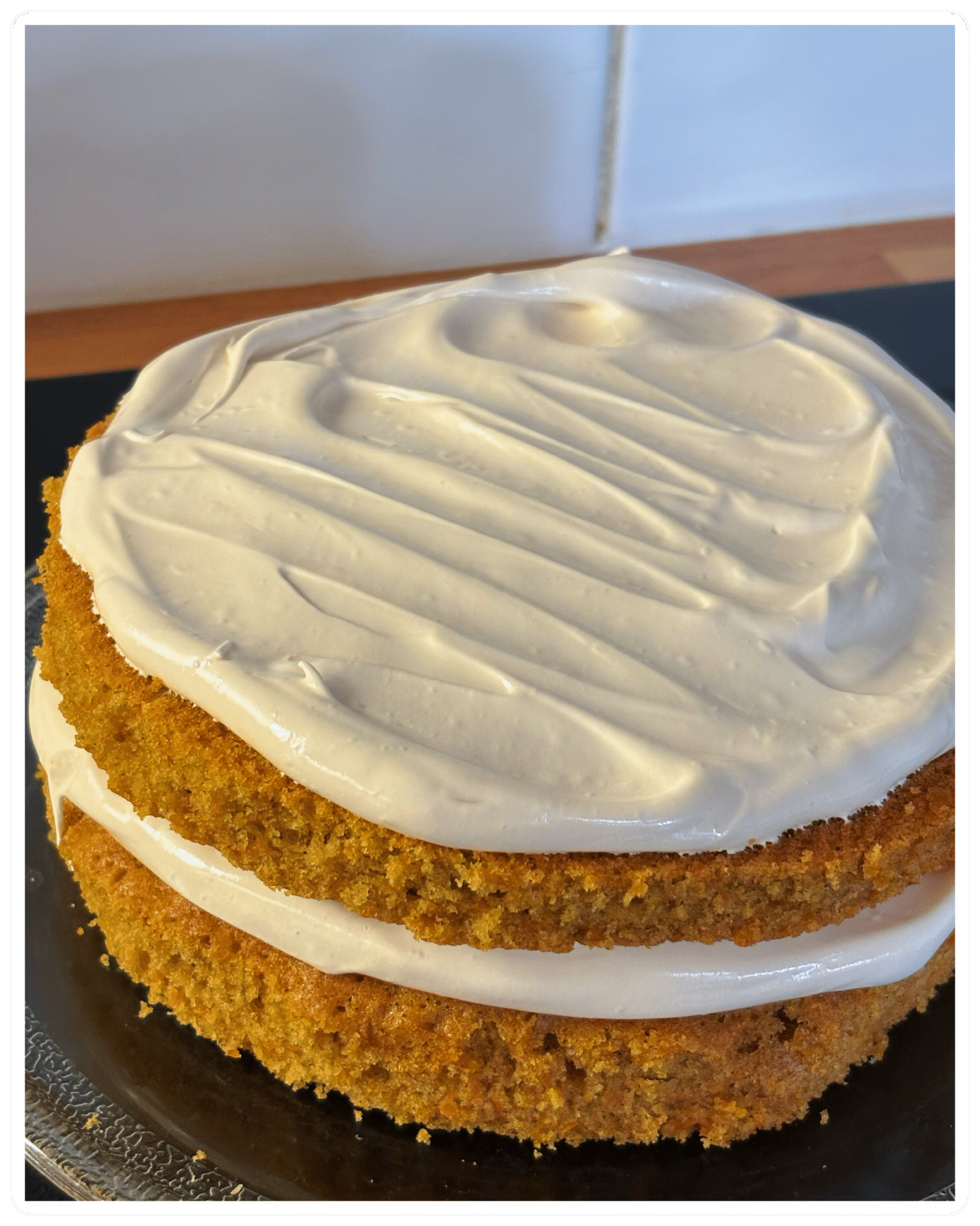 Delight in a lightly spiced carrot cake topped with smooth maple sweetness ๐ฅ๐ฏโจ