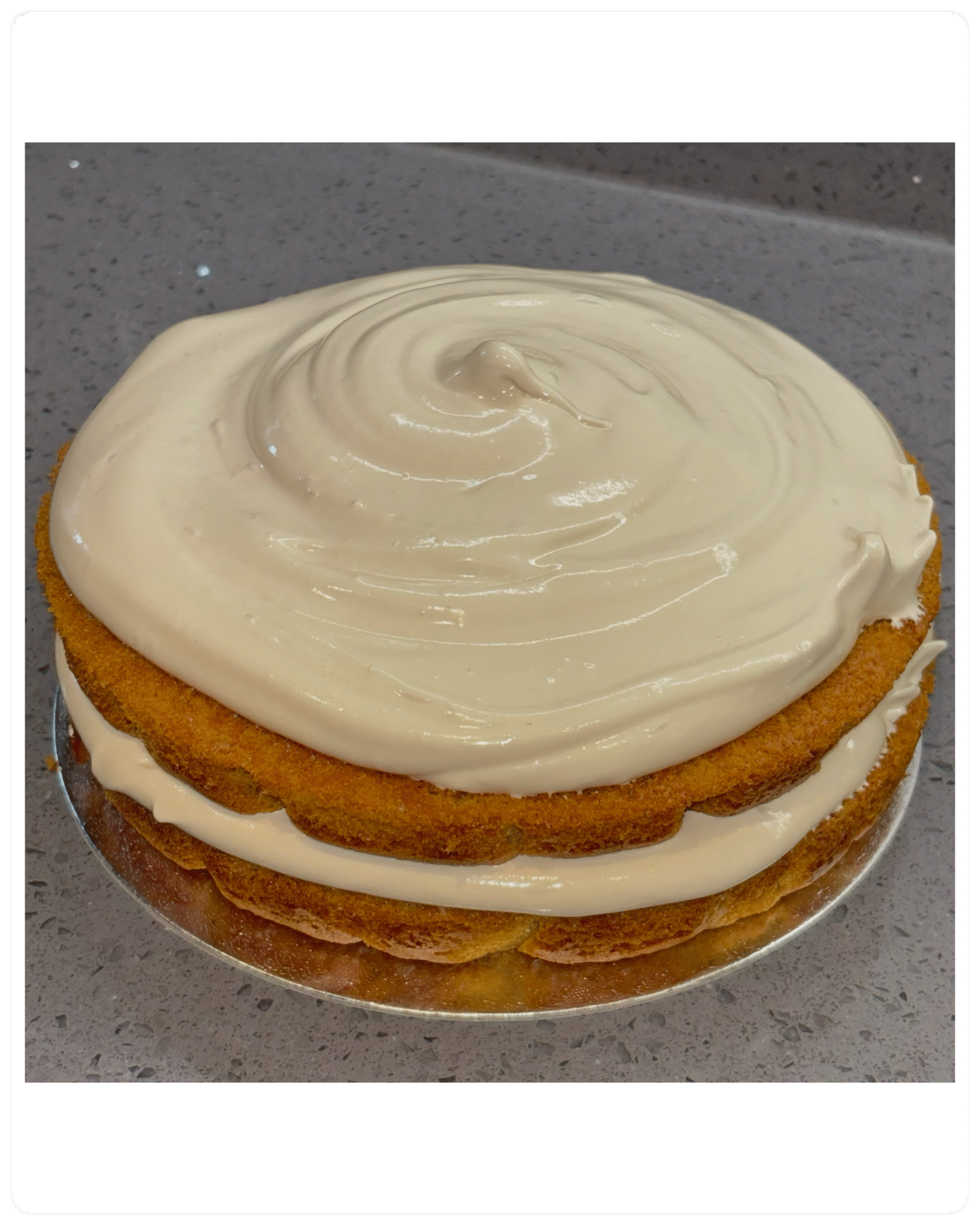 Each slice is golden, tender, and packed with natural sweetness, topped with a delicate maple syrup frosting that adds a rich, comforting touch. Perfect for family gatherings, afternoon treats, or simply enjoying a cozy moment with a cup of tea.